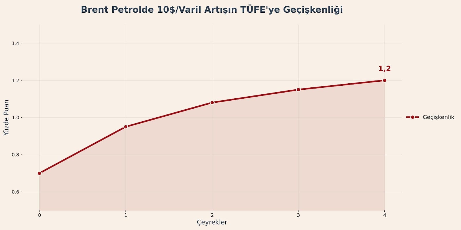 Petrol fiyatlarının Türkiye enflasyonuna geçişkenliği ölçülebilir ve anlamlıdır. TCMB verileri ve finansal modellemeler, JP Morgan'ın analizlerine göre, Brent fiyatında 10 dolarlık bir artışın yıllık TÜFE enflasyonunu bir yıl içinde yaklaşık 120 baz puan yukarı çektiğini gösteriyor. Bu geçişkenlik enerji ve ulaştırma fiyatları kanalıyla pompaya, mal ve hizmet faturalarına ve navluna yansıyor.